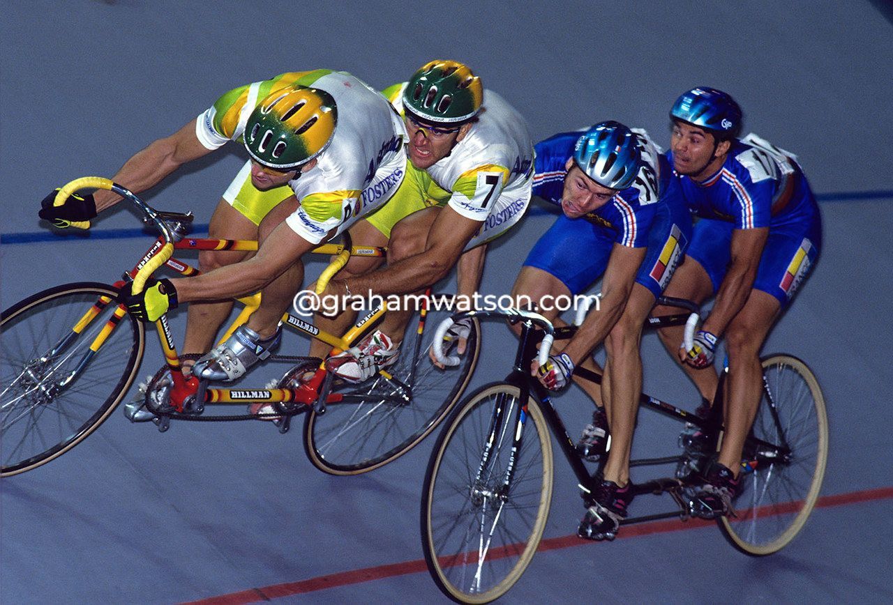 If chronology helped my image-choosing more than a little, the same could not be said for the images I've snatched around the actual racing. There was a time when I felt that a full season was one that saw me going to a few early-season races, then the Classics, then the Vuelta, Giro, Tour - and finally the Worlds. With perhaps an autumnal gem like Paris-Tours or Lombardy to indulge myself with as the season closed. But newer non-European races came along in the early 2000's, enticing me to other parts of the world and inspiring a whole new archive of images. This was where my picture selections for the book got that much harder. Modern races like the Tour Down Under, the Tour of California, Arabian events like Qatar, Oman, Dubai and Abu Dhabi - and even Australia's Herald Sun Tour - brought increased competition to the picture selection. Equally, any race - old or new - has a character that is unique to that race, an attraction that cries out to be caught on-camera and maybe published in the book. This is never truer than with the Olympic Games, a sporting colossus I photographed seven times between 1992 and 2016. Needless to say, I've made special sections for each Games. The imagery of those events is too good to be excluded and reflects the titanic battles between the old Germany, France, Australia and Great Britain as they set about dominating the cycling world.
