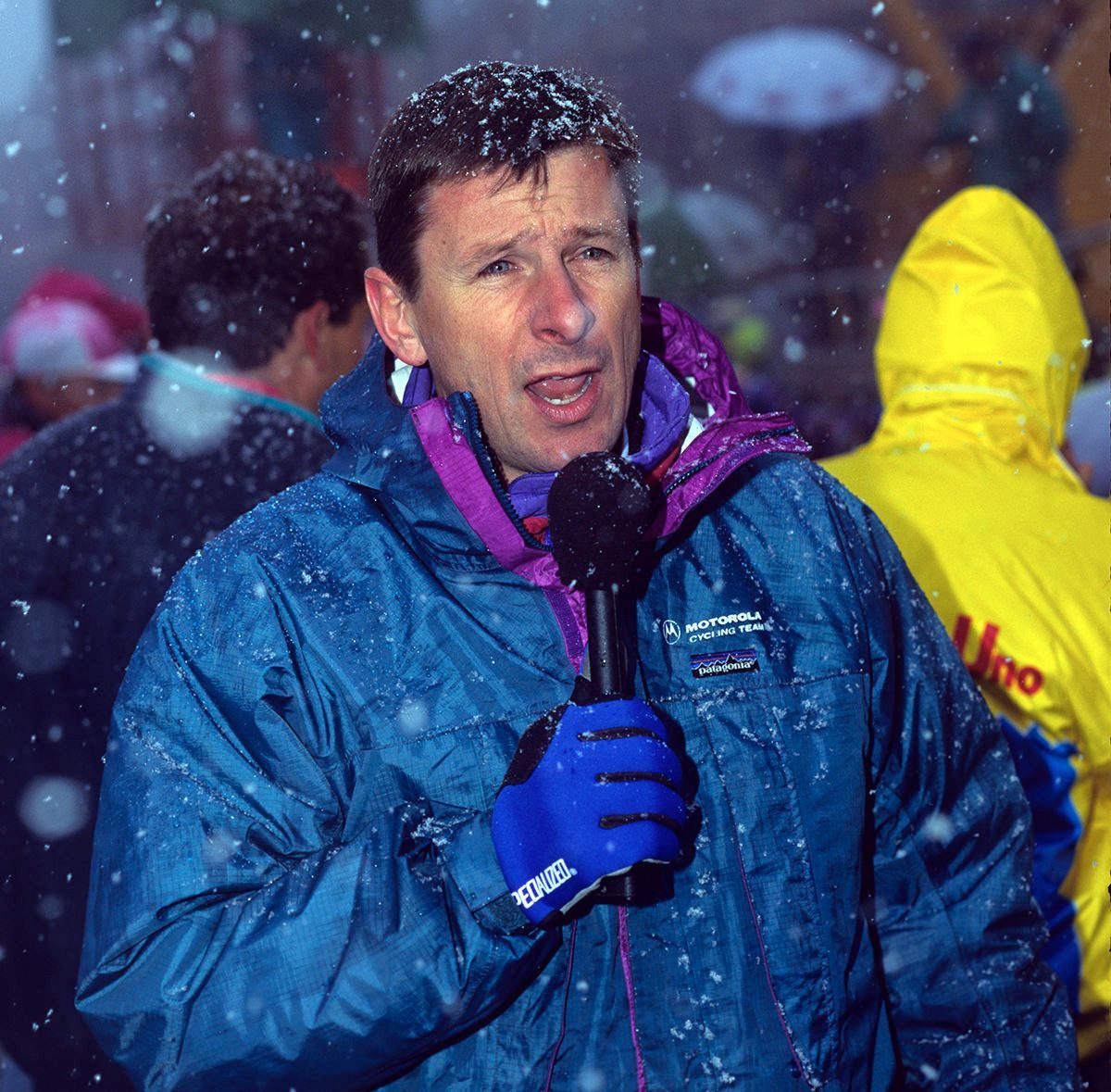Compared with today’s aloof and nervy PR men, life with Paul at Motorola was a laugh-a-minute era. A PR guy acts as the team’s public face, issuing official statements, organising interviews, schooling the teams’ cyclists how to deal with the media and the fans, and basically making sure the cyclists are afforded some much-needed privacy when the race is over. The more skilled ones – and Paul established himself as a master in this role – act as a firm but polite barrier to enable the team to go about their business of training, organising, eating and racing with as few distractions as possible. Certainly, Paul had the right credentials to take the pressure of sports directors like Jim Ochowicz and Hennie Kuiper. Paul could sense the team’s pulse on an hour-by-hour basis, and gauge his own actions accordingly. For example, he didn’t need to be told when a team rider had had a bad day and wanted to dodge a media interview. Paul’s method of apology was often to take the waiting journalist into the bar and regale him with a few funny tales of the Tour or of Africa, while the dejected interviewer drank a nice cold beer and eventually forgave Paul and Motorola. Paul’s hardest task was shepherding a corporate Motorola executive for a few days, explaining the tactics that might lead to a win, but then explaining why Motorola hadn’t won. Typically, Paul turned bullying corporate beasts into fans, and had most Motorola guests eating out of his hands. Only rarely did he need to use a last-resort tactic – treating the awkward executive to the scariest of drives in a team Volvo in order to gain the upper hand.