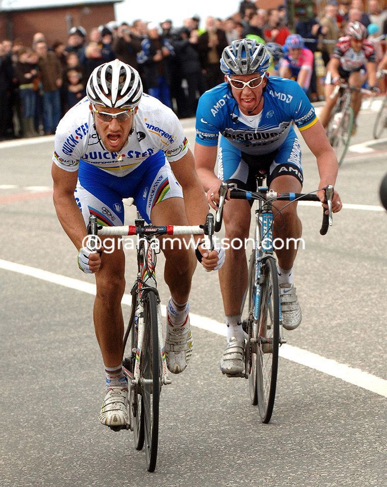 Next up, the Koppenberg was hosting its regular die-hard fans - they never go anywhere else, so no changes there. But it was the Paterberg, first used as far back as 1987, that held the biggest surprise. Several thousand seemed to have found a place to sit and watch, some in VIP areas the rest on flat ground dug out especially for the day. On this revolutionary circuit, the Paterberg would finally eclipse the importance of the Koppenberg, its neighbourly rival for so many years. The cobbles were better, so no-one walked, yet the climb was steep enough to force the final act in the race on a hill that provided a perfect amphitheatre where spectators could get an un-interrupted view - twice. And what finales this hill and its supporting act, the Kwaremont, would witness.